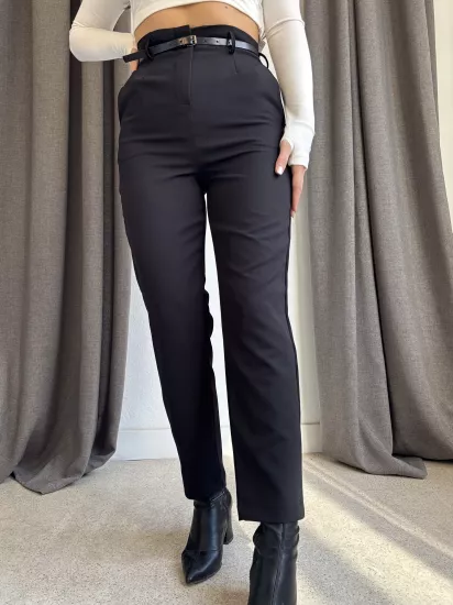 Pensli Flotalı Dar Paça Kemerli Pantolon