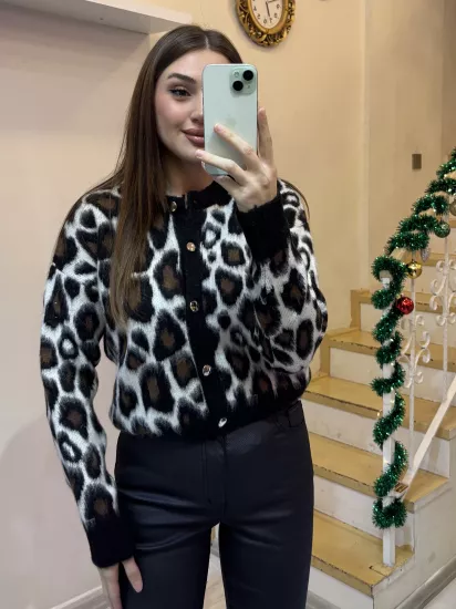 Leopar Desenli Hırka